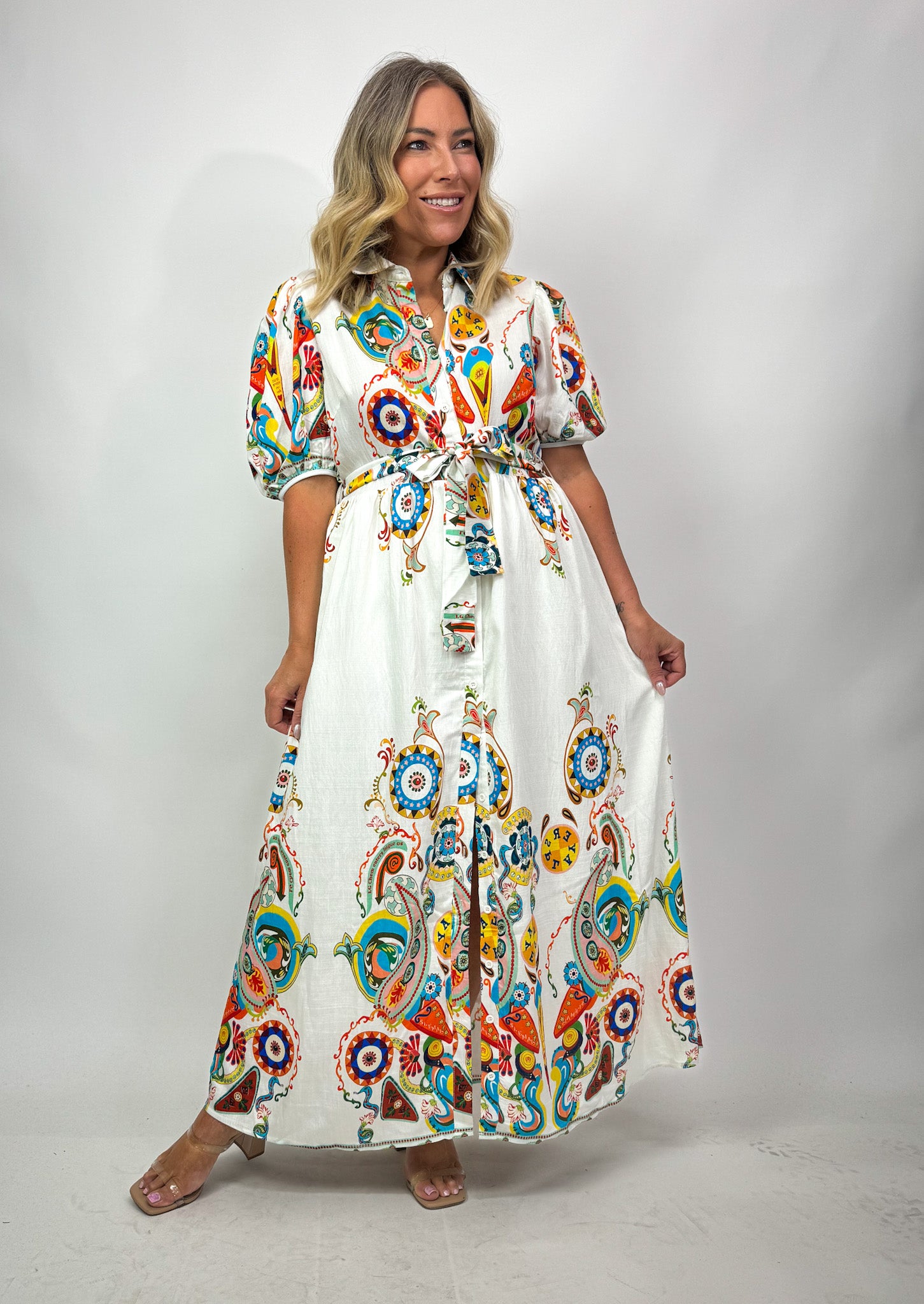 Crafted with a unique print, the SLEMAI Shirt Dress is a true standout piece. Its bold print is sure to turn heads and make a statement wherever you go. Plus, with its maxi length, this dress exudes a sense of elegance and sophistication.