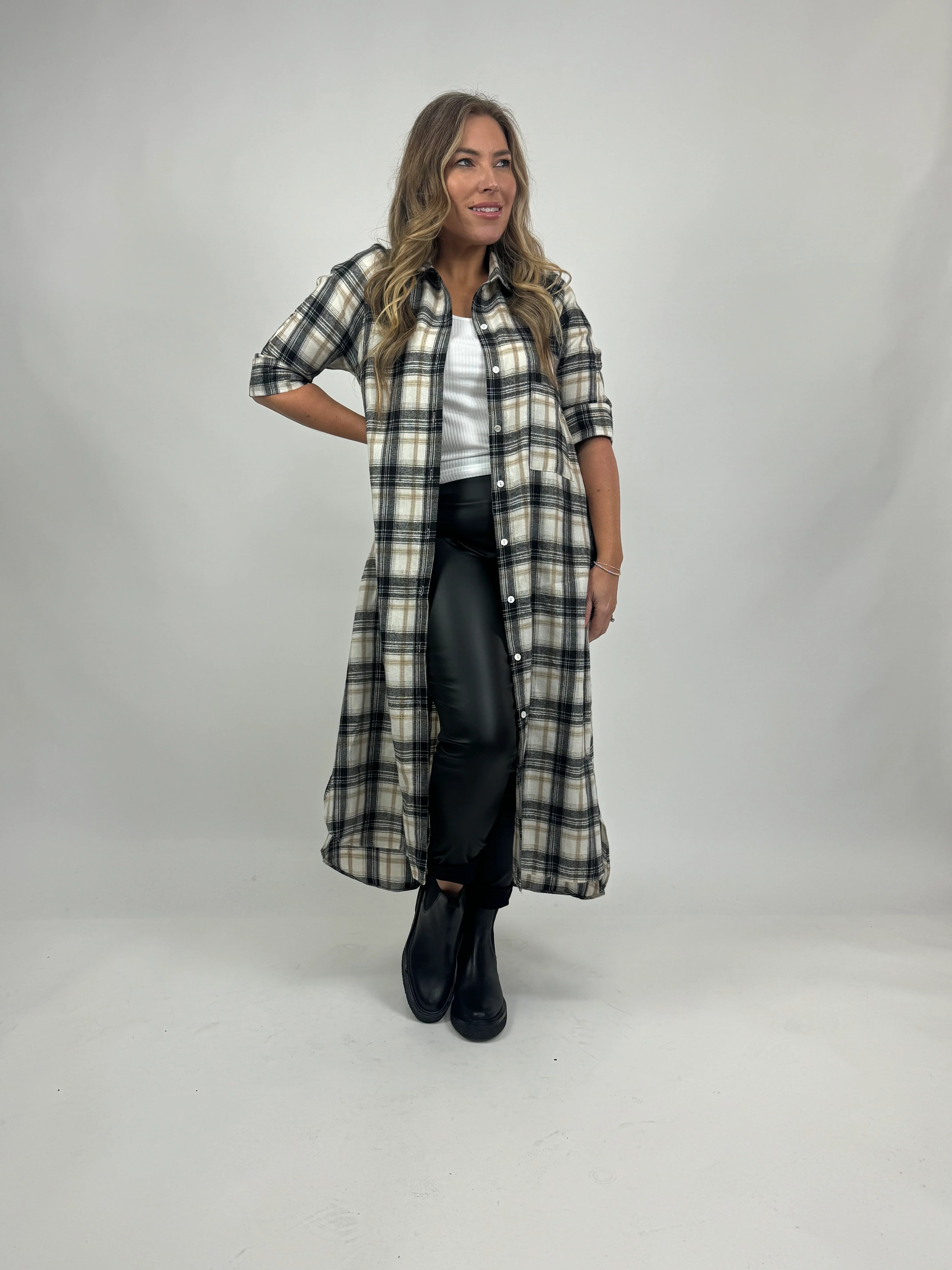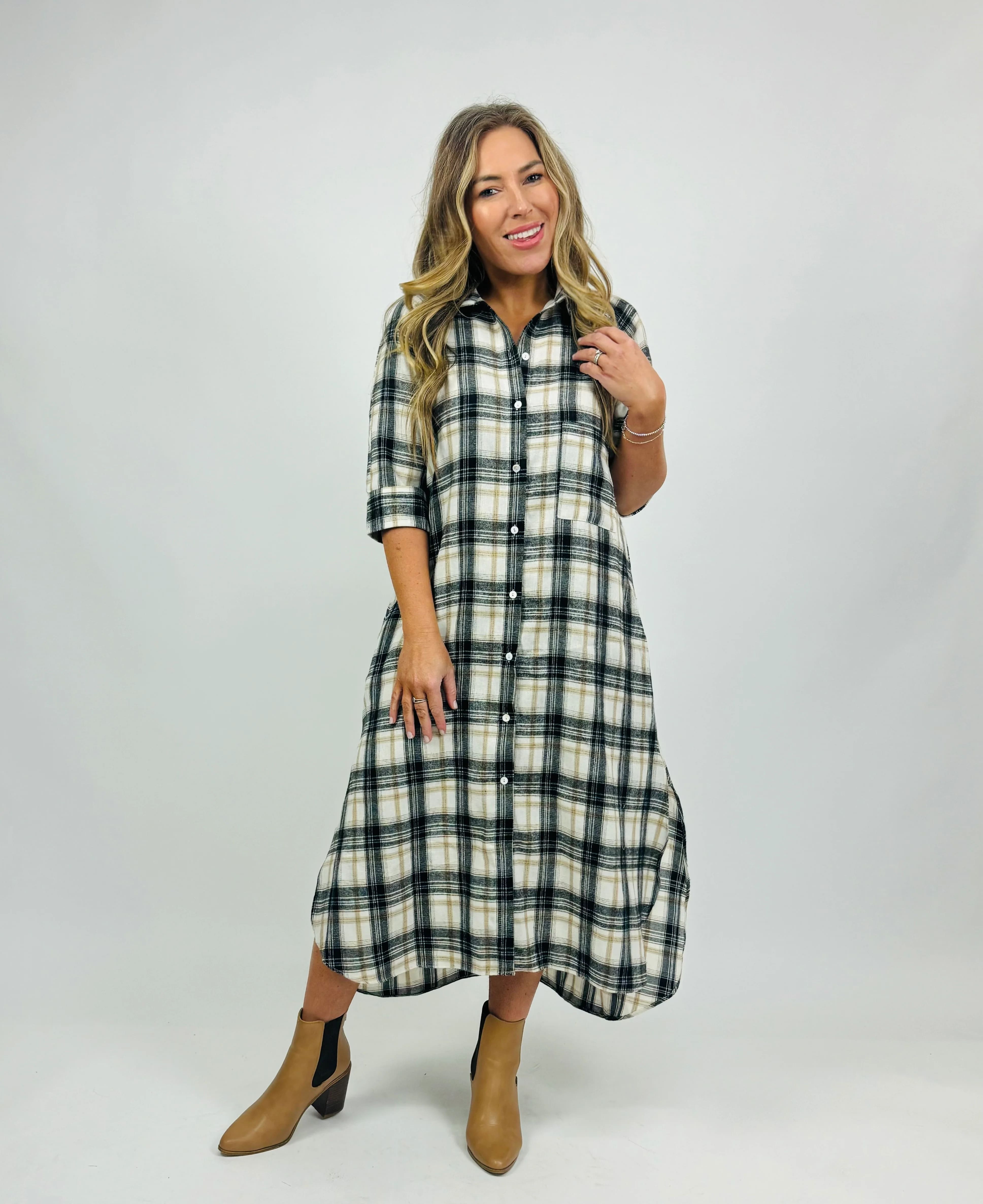 Introducing our versatile and stylish Tartan Shirt Dress - the perfect addition to your wardrobe for any occasion. Whether you're dressing it up for a night out or keeping it casual for a day out with friends, this dress effortlessly blends comfort and fashion.