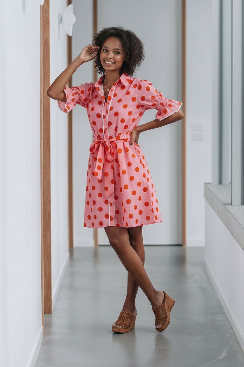 CONTRAST POLKA DOT DRESS