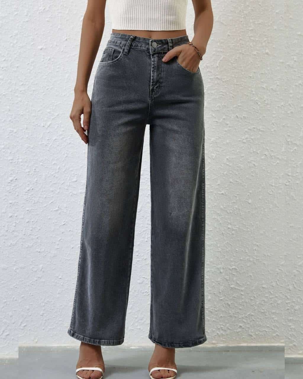 With a high-rise waist, these jeans hug your curves in all the right places, giving you the confidence to conquer the day. The straight-leg silhouette elongates your legs and creates a sleek and polished look, perfect for any occasion.