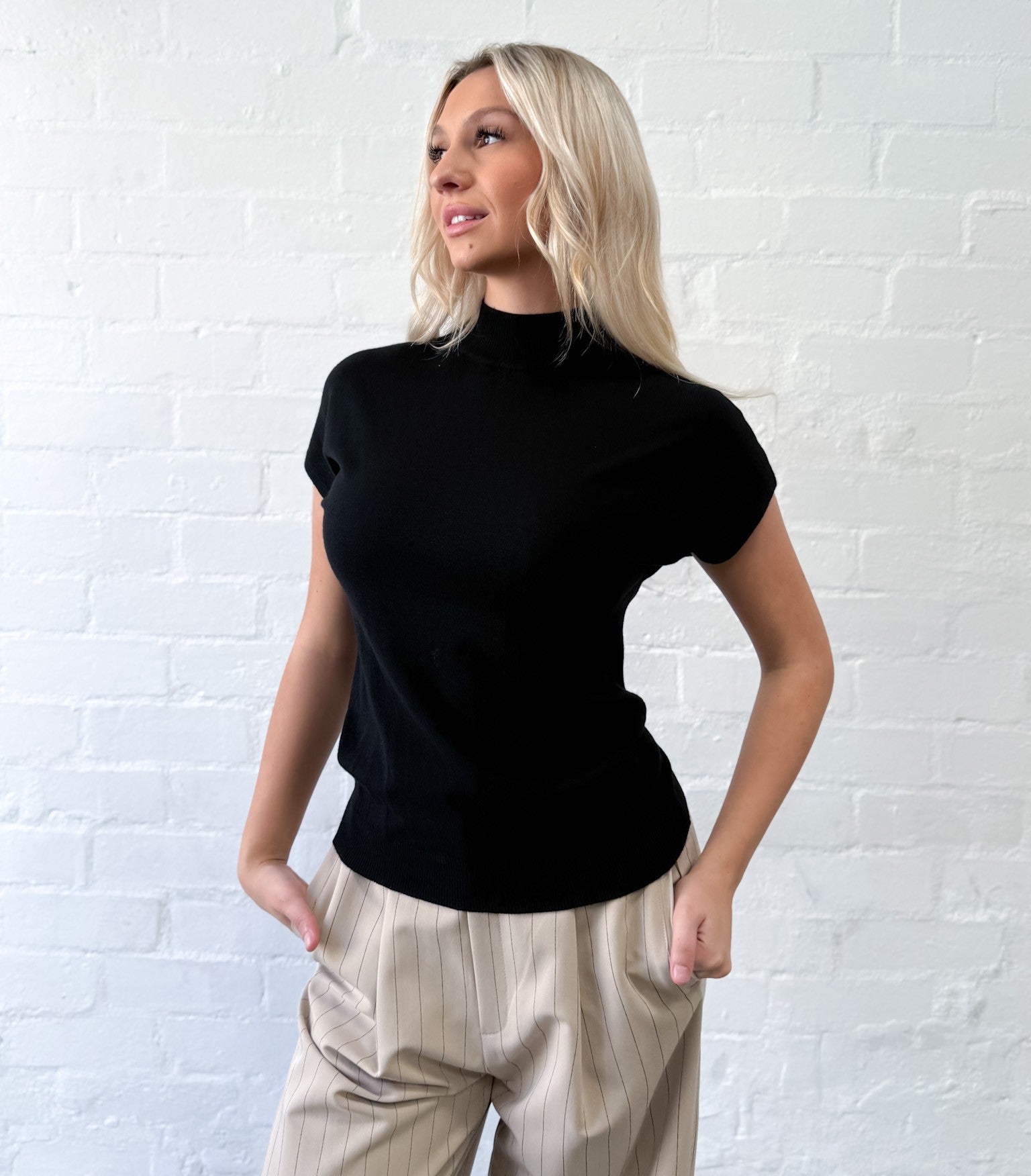 This chic turtleneck is a modern twist on a classic style, featuring short sleeves for a unique and trendy look. The fitted knit hugs your body in all the right places, creating a flattering silhouette that will surely turn heads.