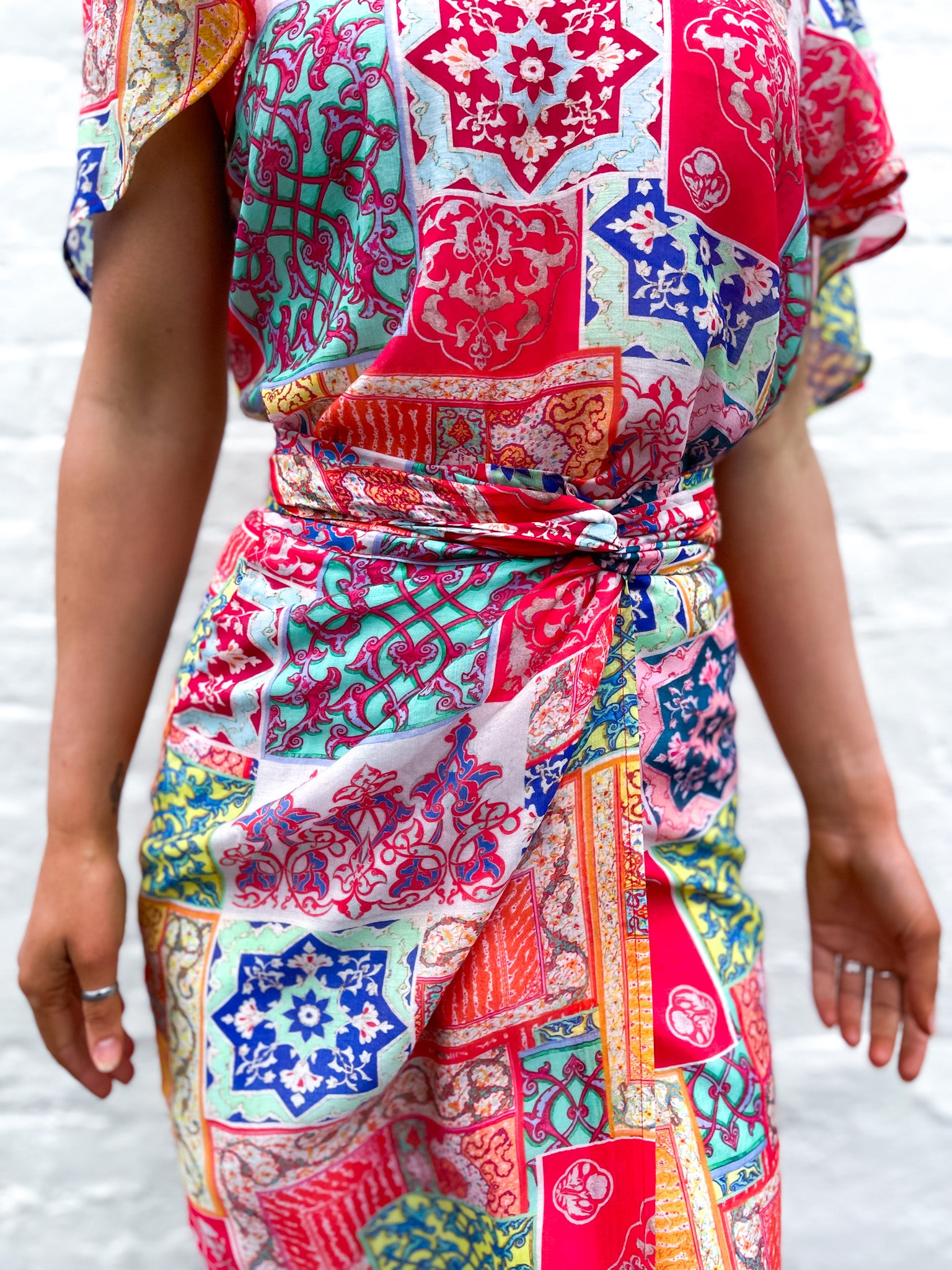 Introducing the ARABASQUE WRAP SKIRT – the essential addition to your wardrobe for any fashion-forward and versatile look. This midi length skirt is the perfect balance of elegance and comfort, making it a must-have piece for any occasion.