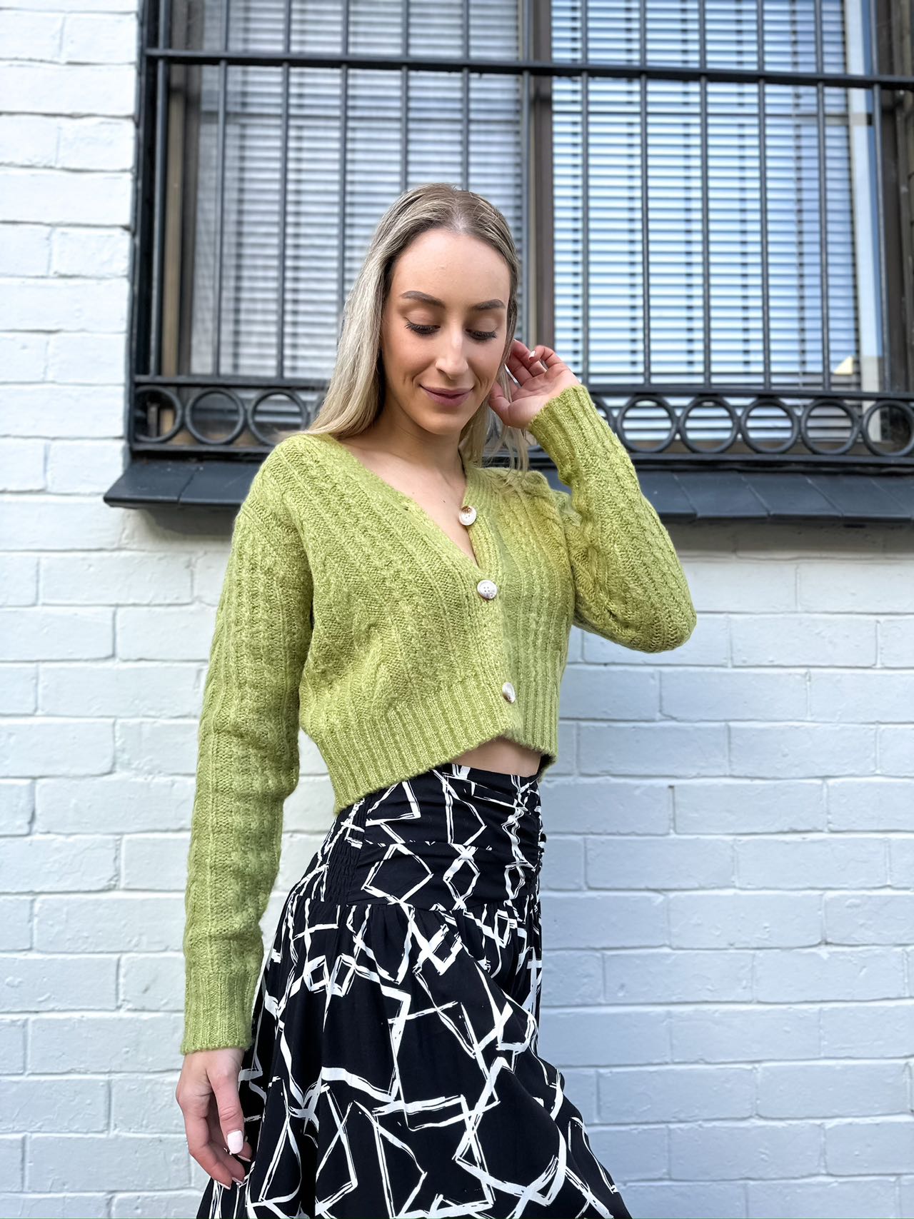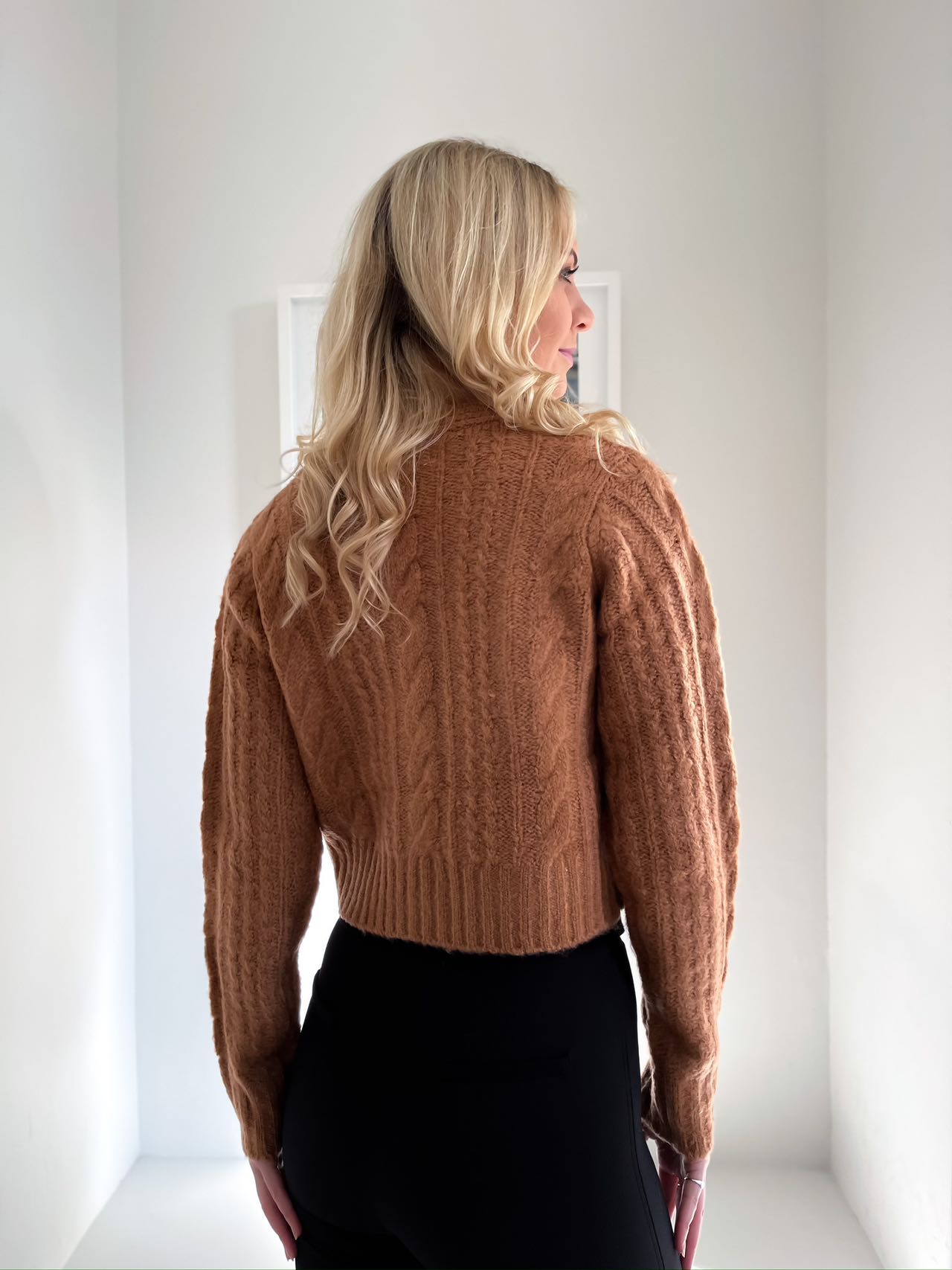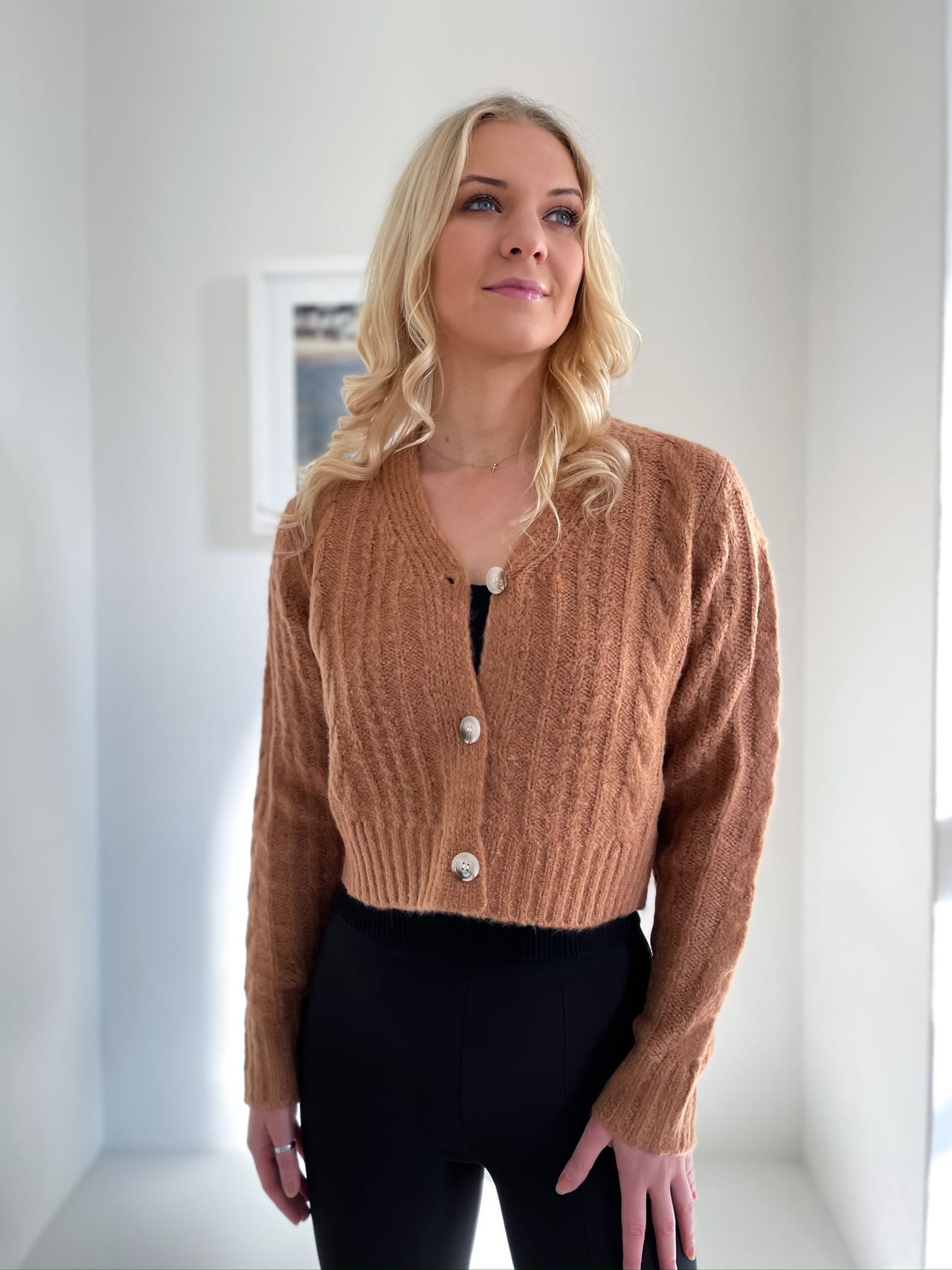 Looking for a stylish way to stay warm this season? Look no further than our CABLE CROP KNIT - the ultimate combination of trend and comfort. Whether you're dressing up for a holiday party or staying cozy on a chilly day, this CROP CARDI has got you covered.