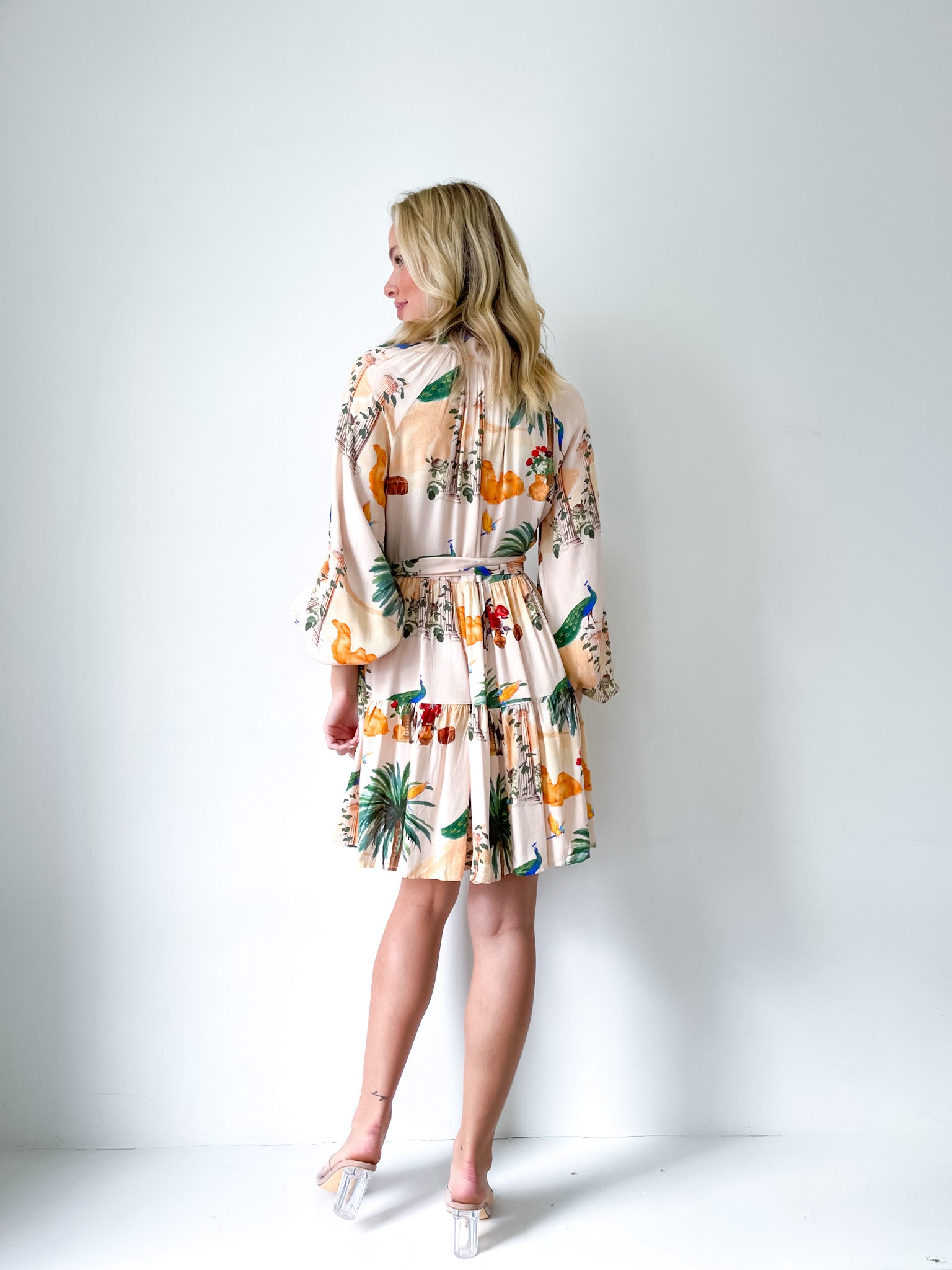 Introducing the Majestic Desert Tier Dress, the perfect blend of style, comfort, and elegance. This beautiful dress features a tiered design that adds a touch of whimsy to your outfit, making it stand out in any crowd. The oriental print is a nod to the traditional patterns of the East, adding a touch of exotic charm to the dress.